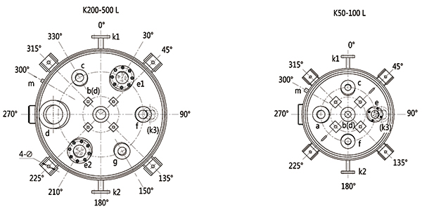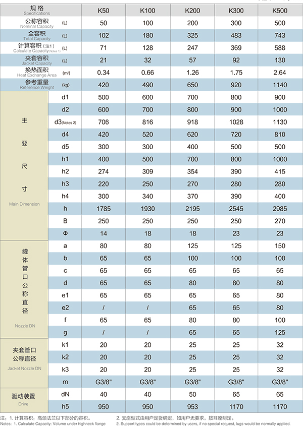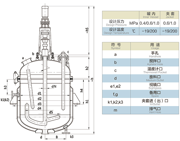 K50L-K500L開式搪玻璃反應(yīng)釜(開式搪瓷反應(yīng)釜)設(shè)計圖紙及參數(shù)如下所示: