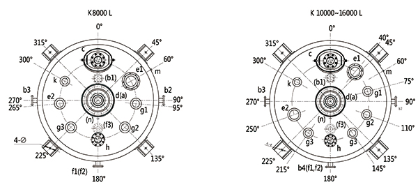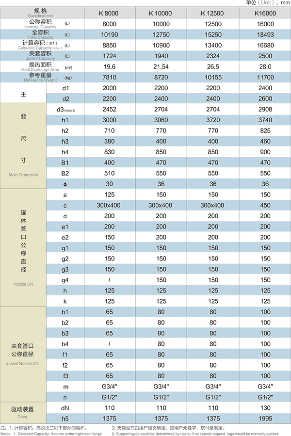 K8000L-K16000L開式搪玻璃反應(yīng)釜(開式搪瓷反應(yīng)釜)設(shè)計圖紙及參數(shù)如下所示: