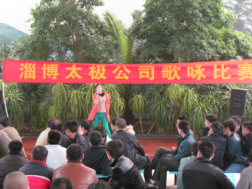 2013年4月12日下午5:00,在太極搪玻璃設備搪瓷設備公司招待所,公司文體部成功舉辦首屆太極歌詠比賽。(太極公司招待所KTV場地于今年3月份正式投入使用,演唱會標準的音響設備、高檔的無線麥克風、智能點歌系統等設施全部為職工免費開放。